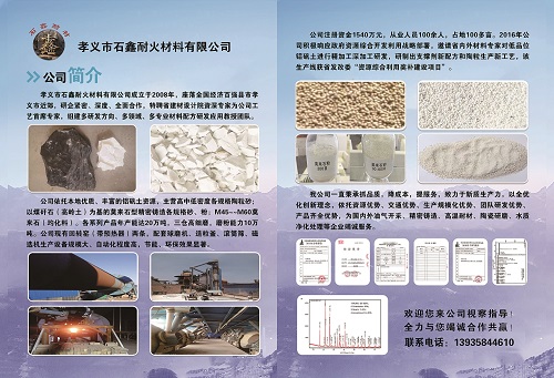 山西孝義市石鑫耐火材料有限公司成立于2009年,注冊資金1240萬元。2011年投產,主要生產鋁系耐火材料,產品包括高溫鋁礬土、輕燒礬土及耐火,砂莫來石,均化耐火材料,污水處理陶粒,凈水處理陶粒,煅燒高嶺土,焦寶石等。